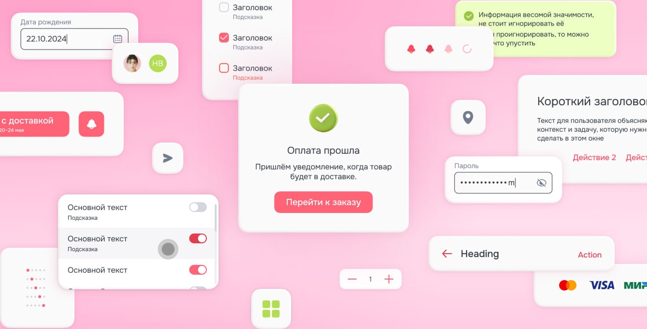 Поскольку система должна была работать сразу на несколько продуктов и платформ, важно было выстроить её так, чтобы она сохраняла общую логику, но при этом учитывала различия между web и мобильными приложениями. В мобильной среде часть компонентов строилась с опорой на нативные паттерны iOS и Android, поэтому задача заключалась не в буквальном копировании одного и того же решения, а в создании согласованной системы принципов.